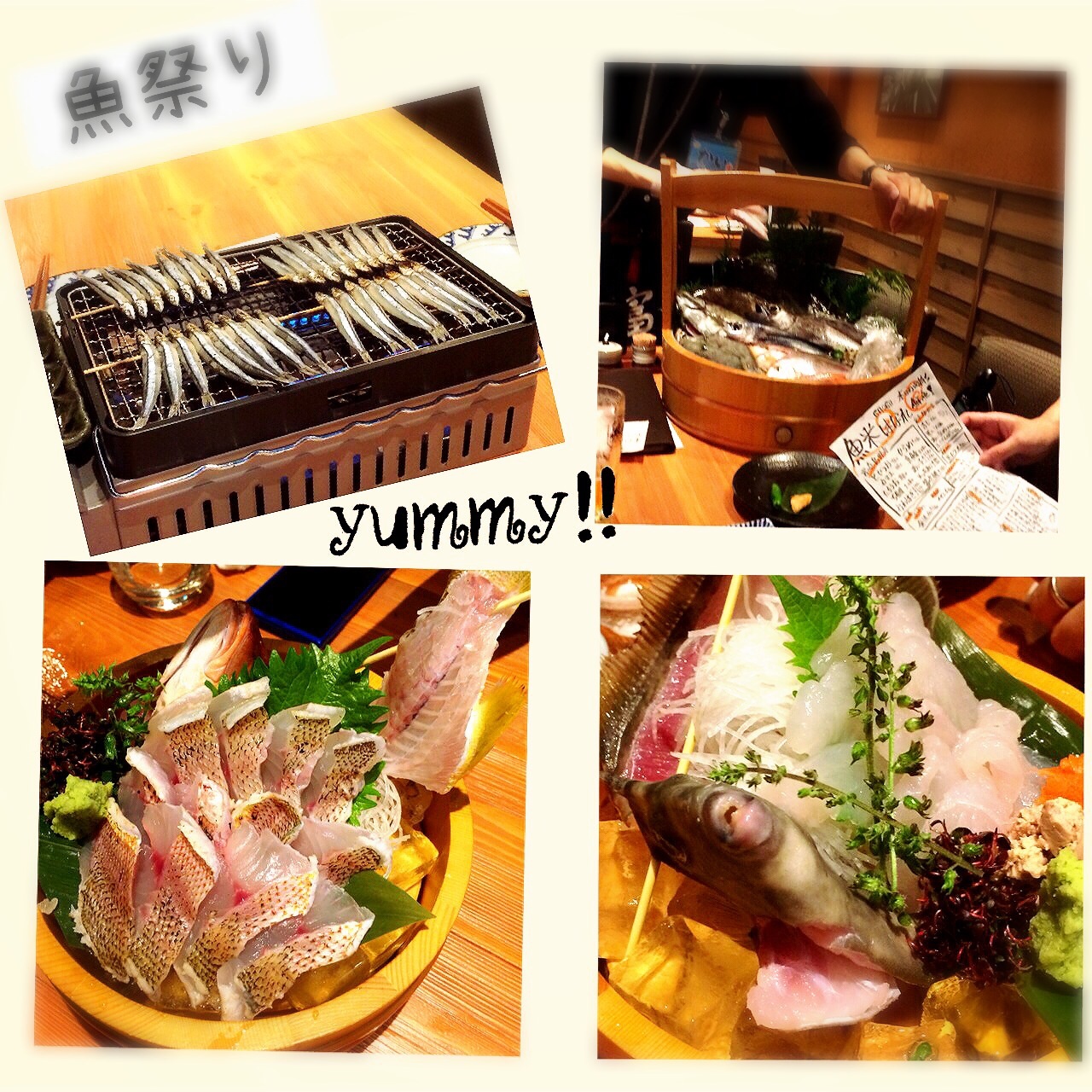 魚祭り♪ 金曜日は6人で飲み会♪そこでまたお友達が美味しいお店探してくれました〜♪このお店はお通しにめざしが出たり(その場で焼く)自分達が魚を選んで刺身にするか?煮るか?焼くか?選べたり!リーズナブルなのになかなか美味しいお店でした!