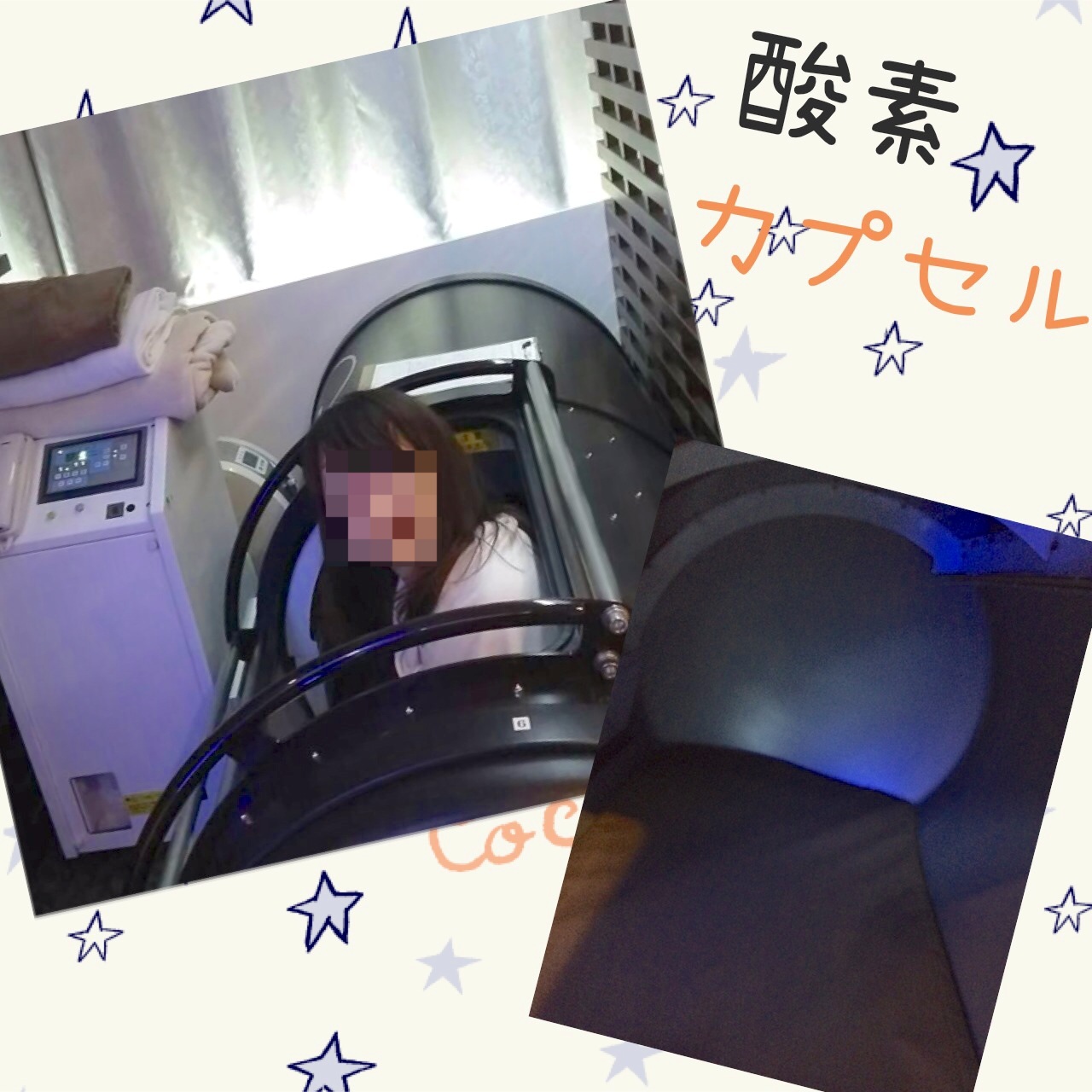 疲労回復?! 昨日はお友達3人と酸素カプセルに入ってきました♪効能は疲労回復、美肌、怪我の回復、などなど盛りだくさん入った効果は…わからん!!の一言(笑)身体が軽い⁈気がする!!うん耳抜きは大変だった…汗(最初7分、最後の5分が気圧の変化で耳抜きしないといけなくて飴舐めると楽だからとの事で4つ持ち込んだのに…最初の方で4つ舐めてしまい…ハッと気がついた時には口の中の飴玉は胃の中へ…てなわけで最後の5分は耳抜きが大変でした(笑))