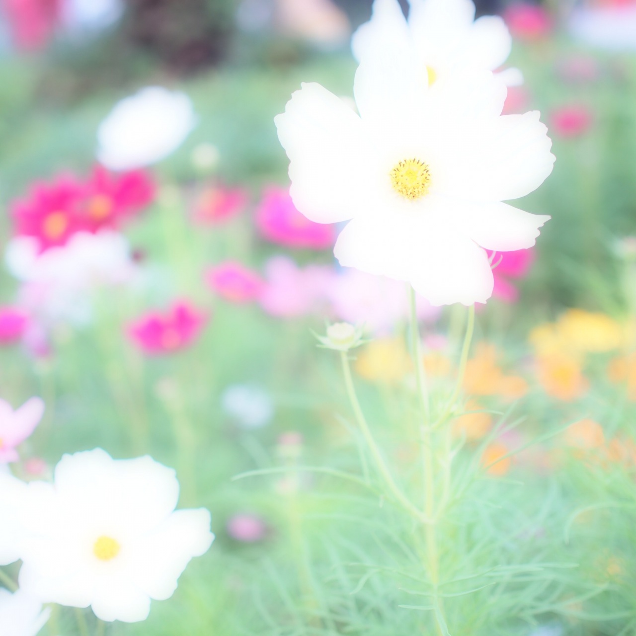 白いコスモスの真ん中の