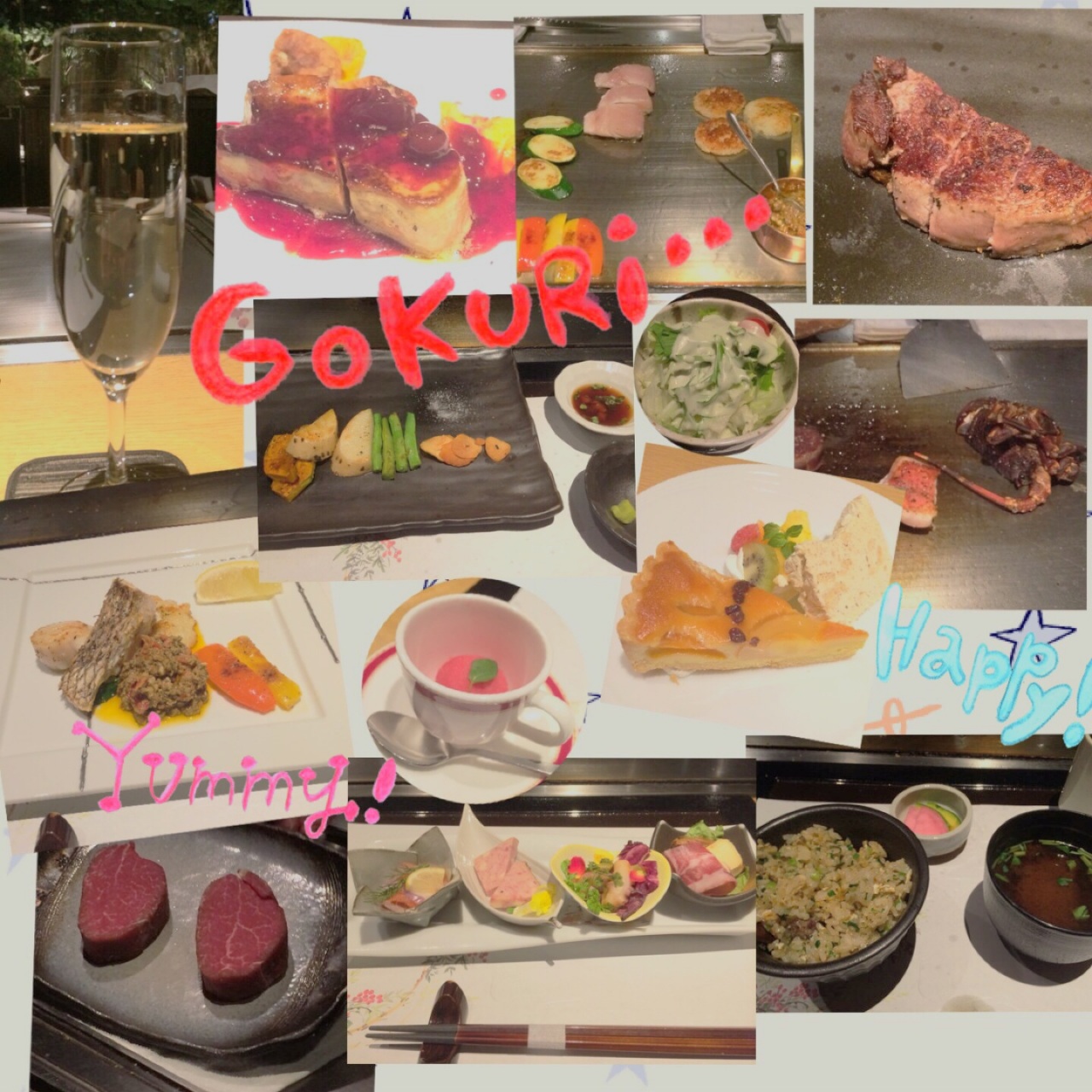 昨日は 1年のご褒美にお友達と肉祭り♪鉄板焼きを食べに♪コースだったし残しちゃもったいないと全部平らげたら帰りの電車で腹痛が…汗駅からお家までも背中丸めておばぁさんみたいに歩いて…この歳で食べ過ぎで腹痛なんて…一昨日も忘年会だったし胃腸が弱ってたのかしらん⁈でも…(今朝の朝食は普通に食べた(笑))はぁ満足満足♪