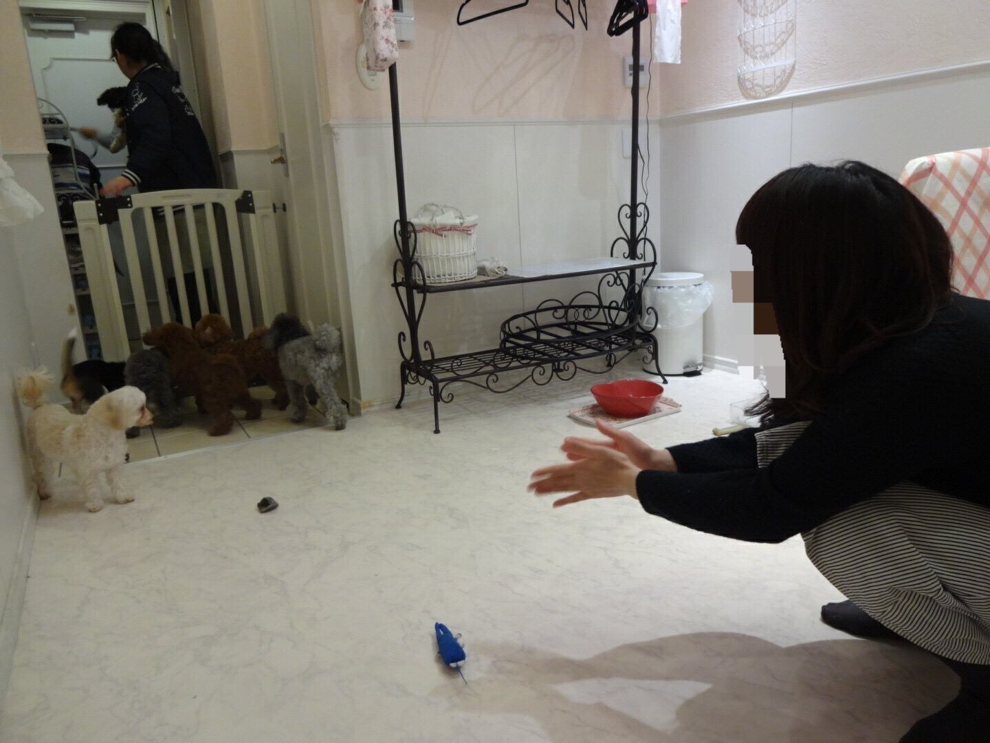 寂しい図 お店のお姉さんが来てみんなそちらへ…誰も来てくれず…寂しい図であります…でも手前のチワプーちゃんが人見知りなのだけど私が気になるみたいで抱っこはしたくないのだけどずっと近くにいたの♡可愛かったな♡そーゆー子好きよ♡この場所飼いたいけど飼えない人にはぴったりのお店お散歩もできるの!でもソファーが高すぎて乗ったり降りたりがヒヤヒヤでした…汗また行きたいけど…帰ったらそっちゃんのくんくんげ半端なくて誰と遊んできたんだ!怒だったので行けないかな…汗